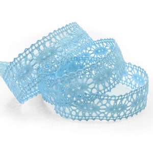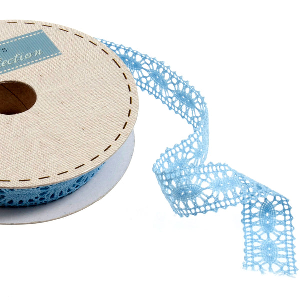 The pale blue crocheted lace is perfect for summer, dressmaking, weddings and babies. Perfect for general crafting and gift wrap.