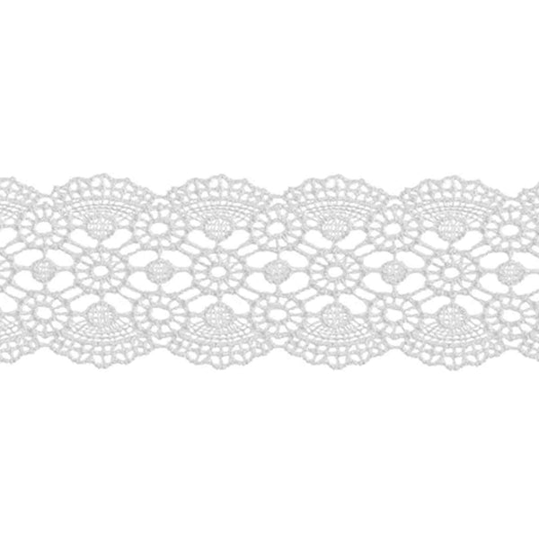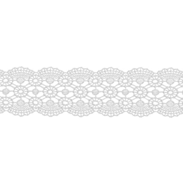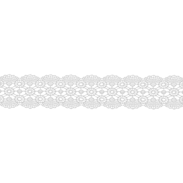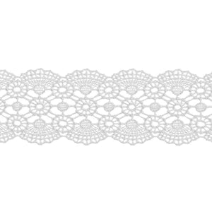 A beautiful premium quality medium weight white lace guipure with a pretty decorative pattern.