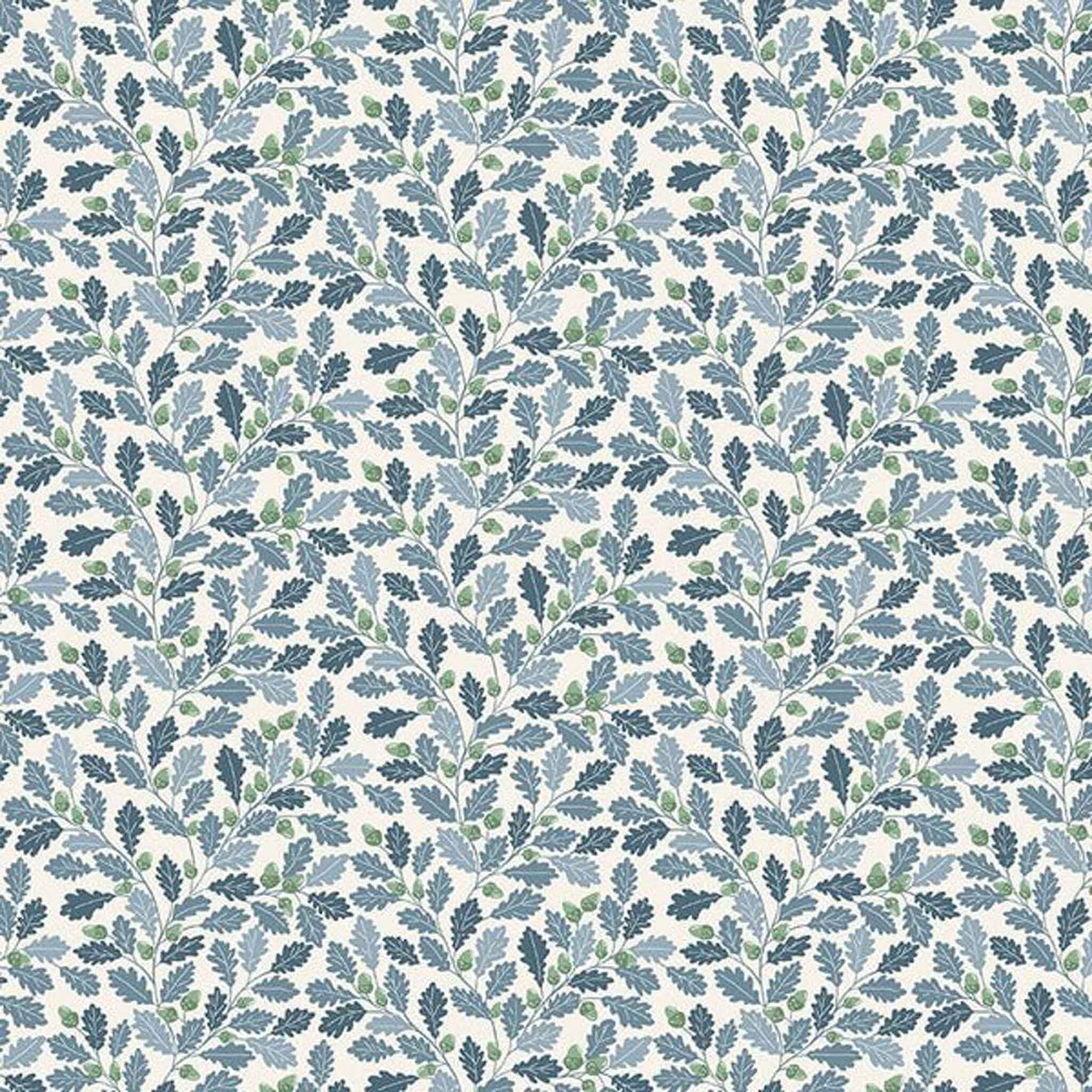 Blue Oak Leaves Cotton Fabric - Makower 2532/B - Heather and Sage Collection