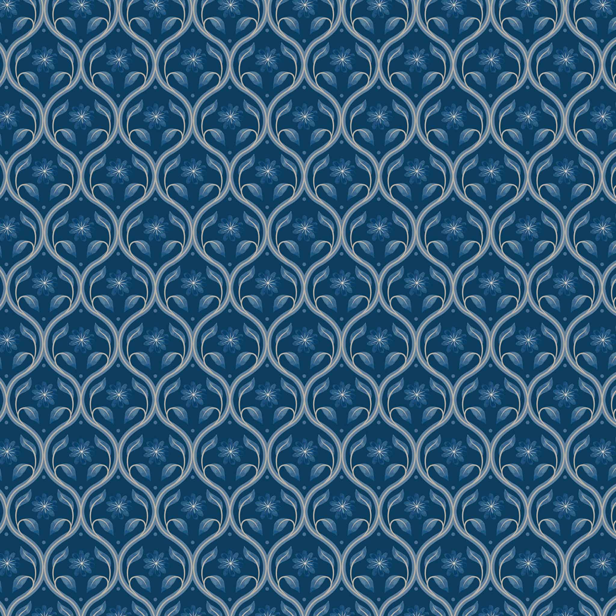 Brensham - Lewis and Irene - Floral Trellis on Dark Blue A752.3 - Cotton Fabric