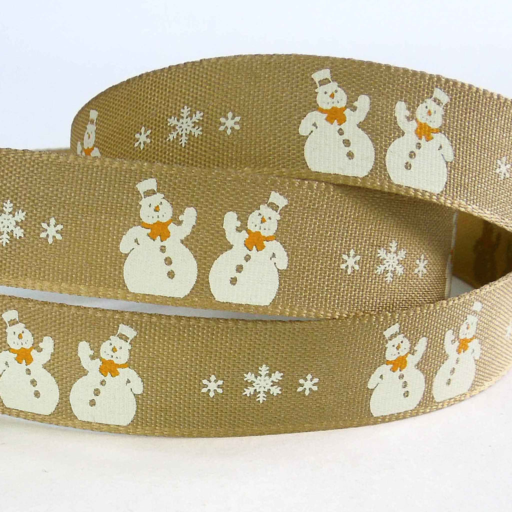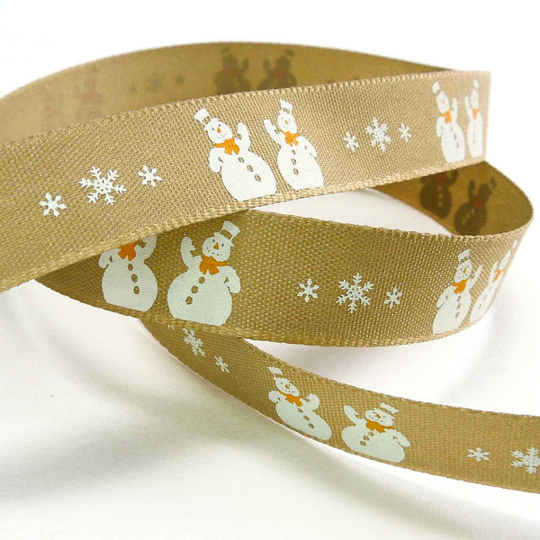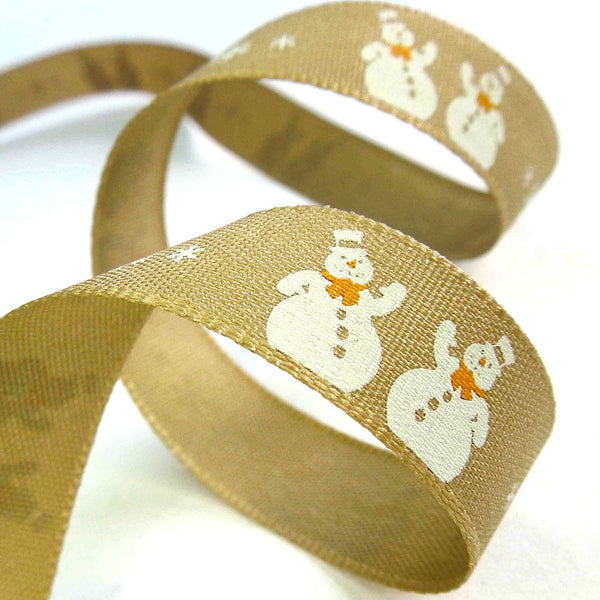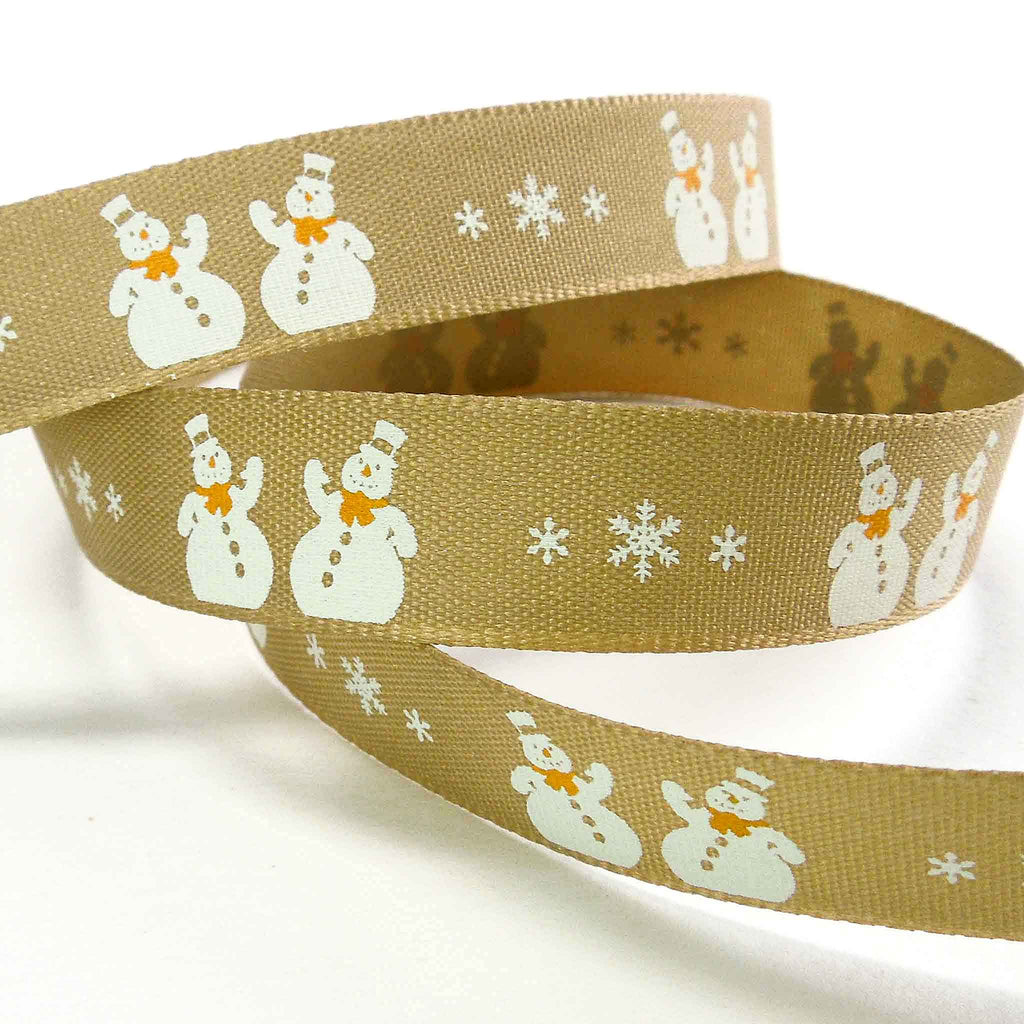 Christmas Snowman Ribbon - Oatmeal - Berisfords - 15mm
