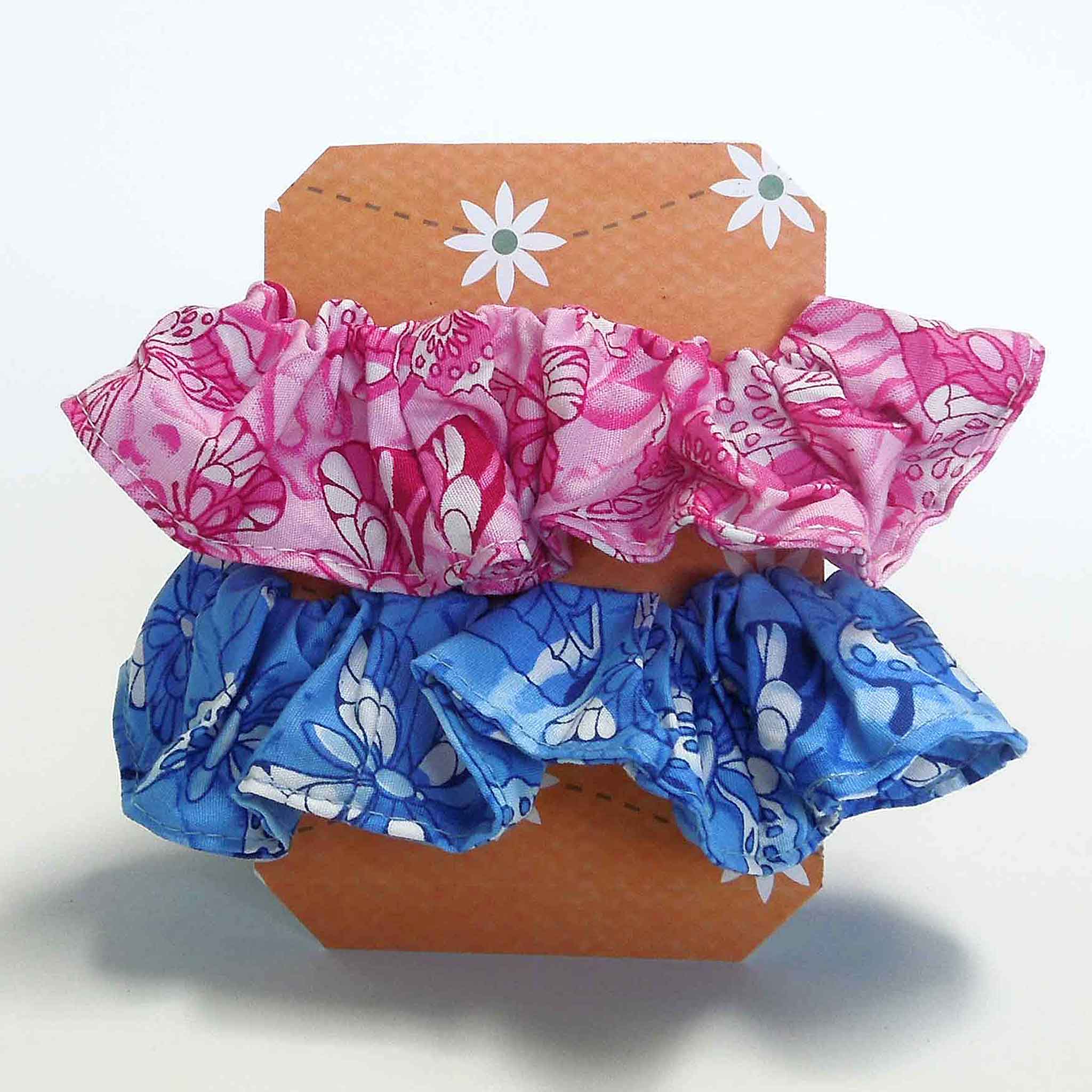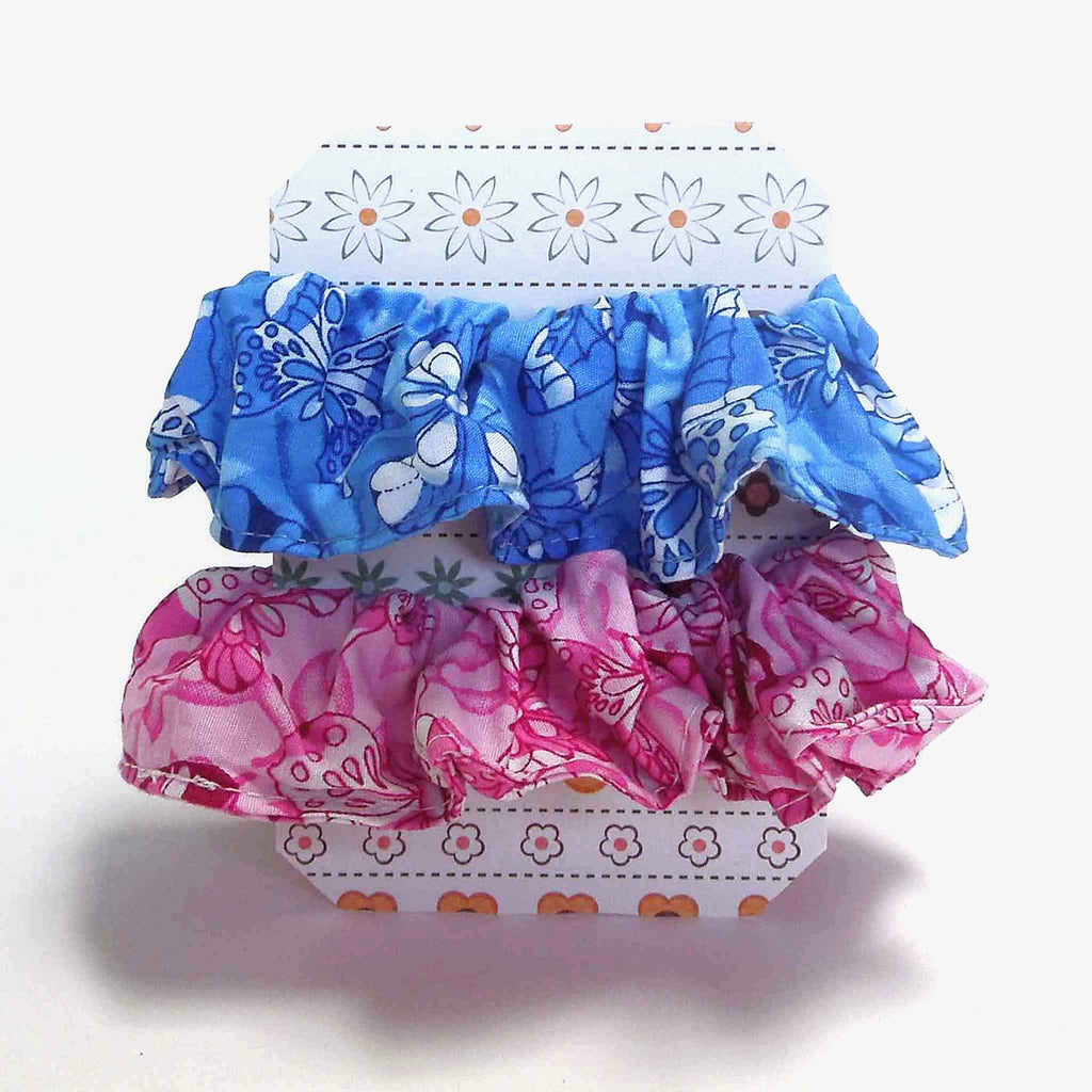 Cotton Scrunchies - Set of 2 on Gift Card - Blue and Pink Butterflies - Handmade in Pure Cotton