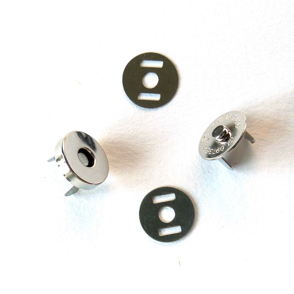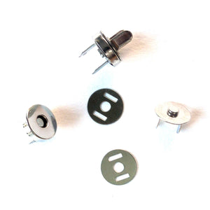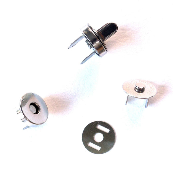 Metal magnetic 4 part bag closures in a silver colour for use with DIY bag making. Suitable for use on most fabrics to or for replacements on existing bags and other items.