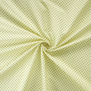 Green on cream small polka dot cotton poplin fabric by Rose & Hubble for crafts, sewing and quilting. This polka dot fabric co-ordinates with the other fabrics in the Rose & Hubble range. A cotton fabric with green small polka dots printed on a cream background.