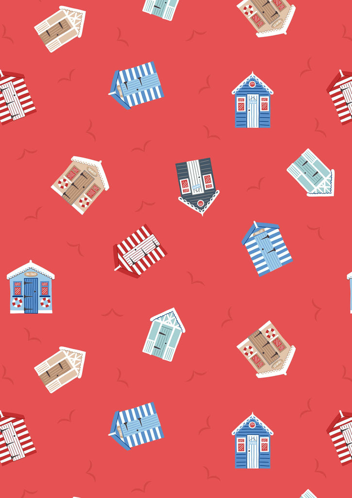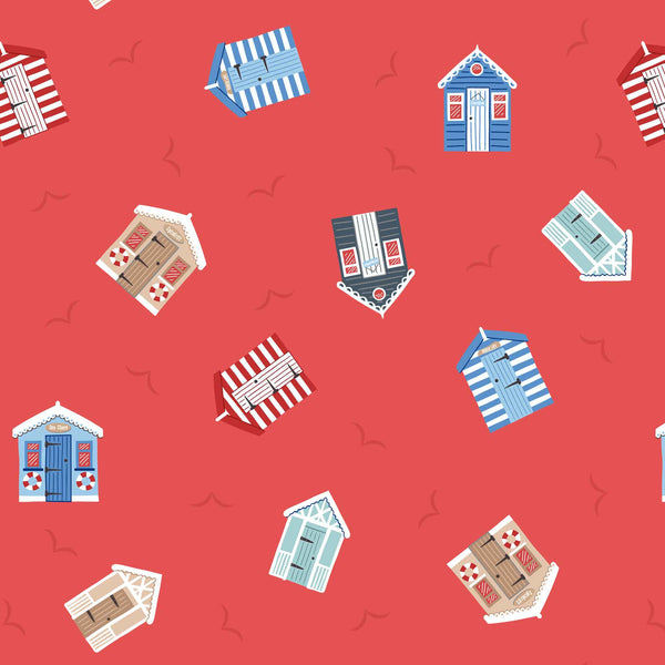 Small Things Coastal - Lewis and Irene - Beach Huts on Light Red SM61.2 - Cotton Fabric