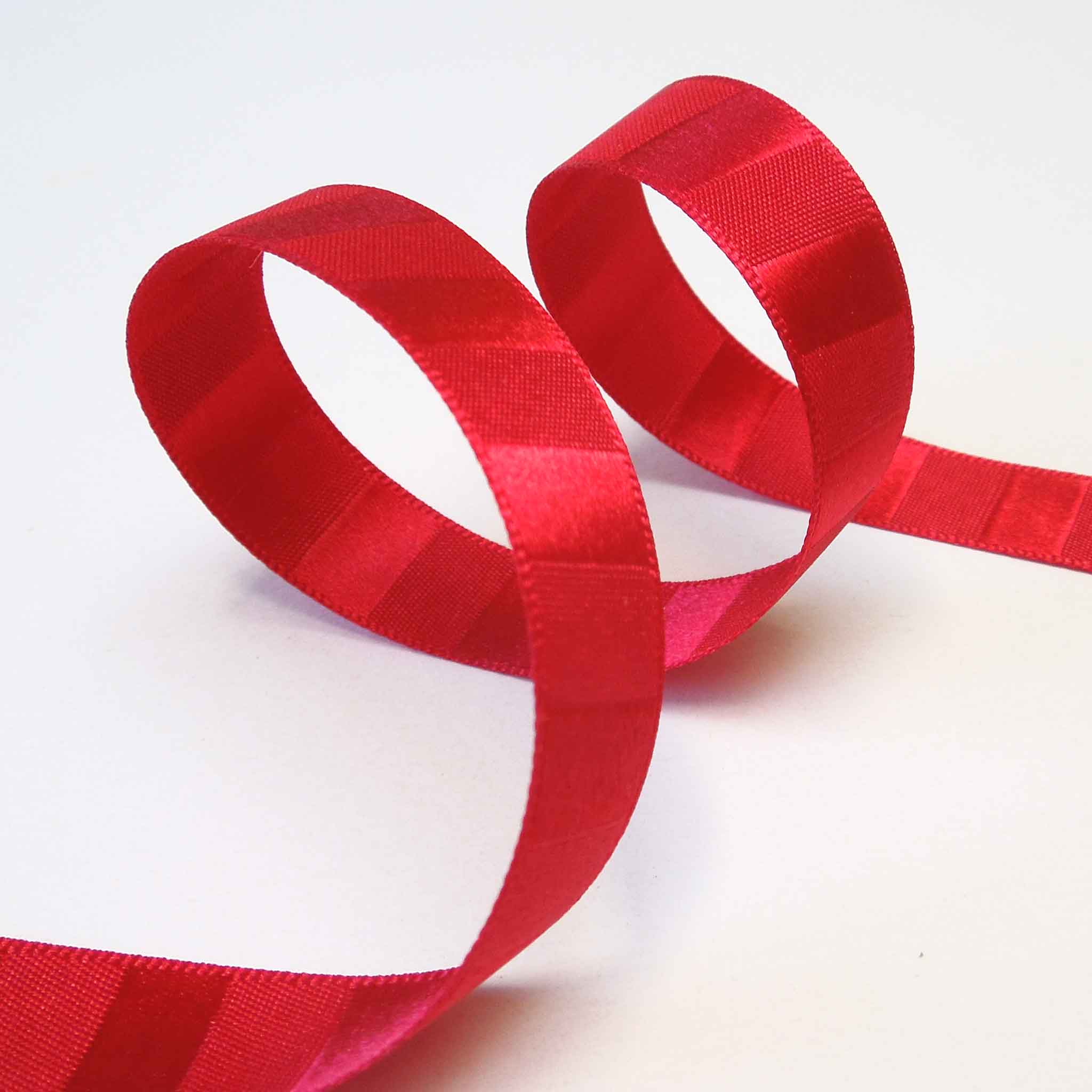 A pretty self stripe red satin ribbon by Berisfords in a combination of textures. This ribbon has the stripes running the width of the ribbon, giving it a stylish and contemporary look.